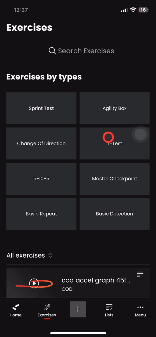 By following these steps you will be able to create your own change of direction test also named COD or 5-0-5 test. 1. Open the Variables menu Tap "Exercises" below on your screen Tap "Change of Direction" Tap "Create a custom exercise" Tap ...